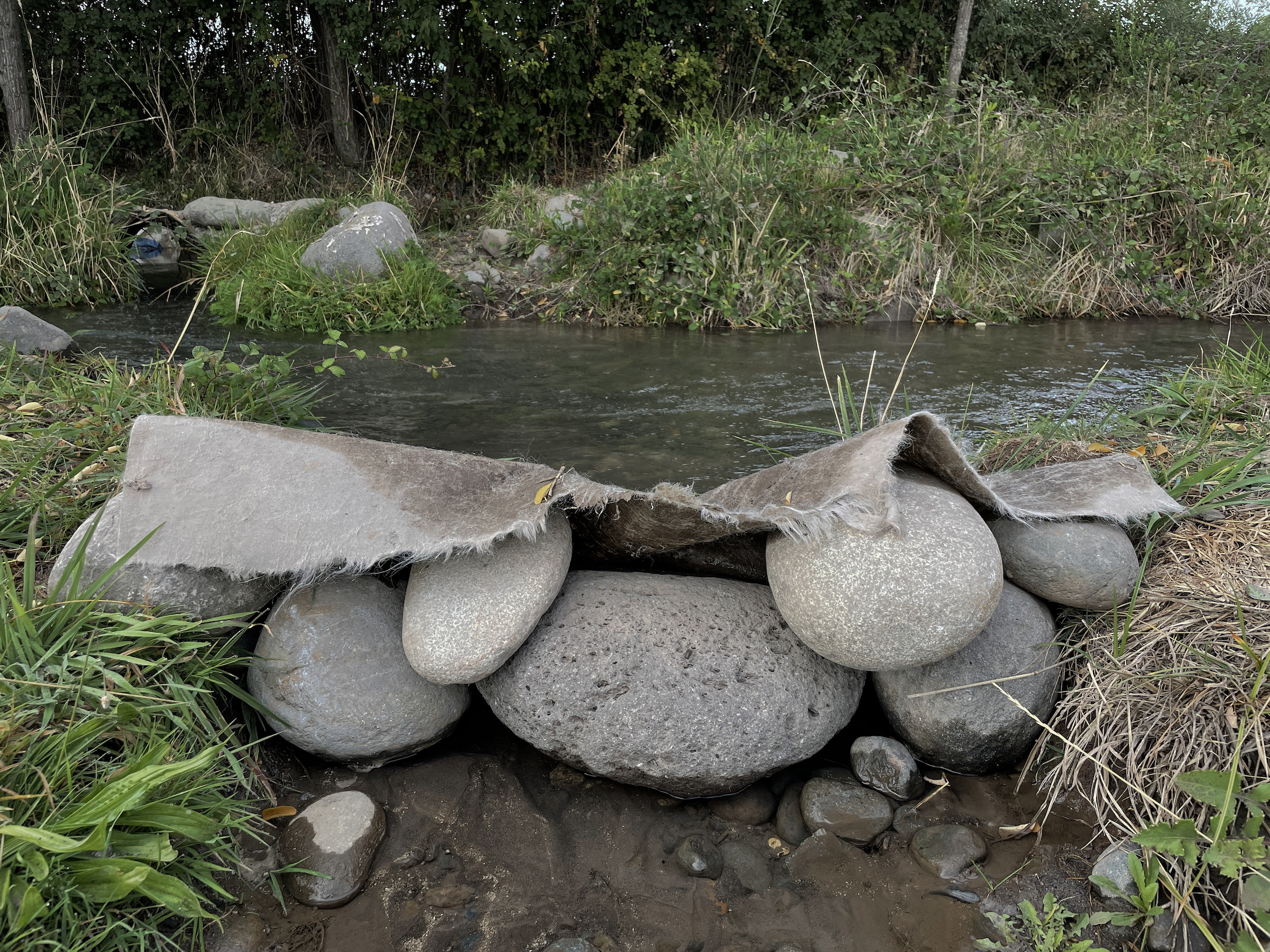 La obra transpone una serie interconectada de vías fluviales en el centro de Chile a la infraestructura arquitectónica de una galería en Santiago. Este acto, en este momento de discusión constitucional busca dar visibilidad a estas prácticas e infraestructuras generalmente desconocidas, aun cuando vitales.